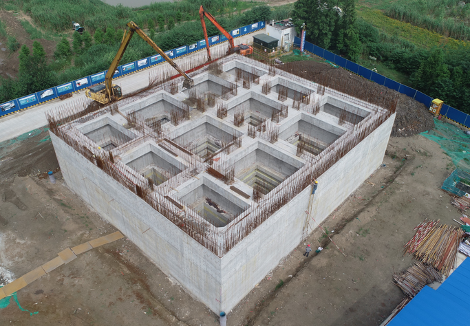 7月6日,由公司承建的鎮(zhèn)江金山湖綜合治理工程末端泵站沉井順利完成第一次下沉工作。鎮(zhèn)江金山湖綜合治理工程末端泵站采用沉井結構形式,是水工構筑物中建造的超大型沉井,沉井尺寸為31.8米×27.5米,深37.1米,相當于14層樓高...